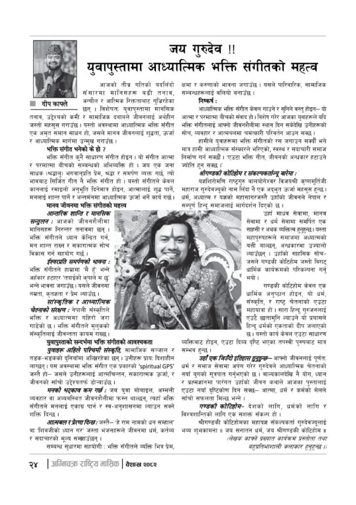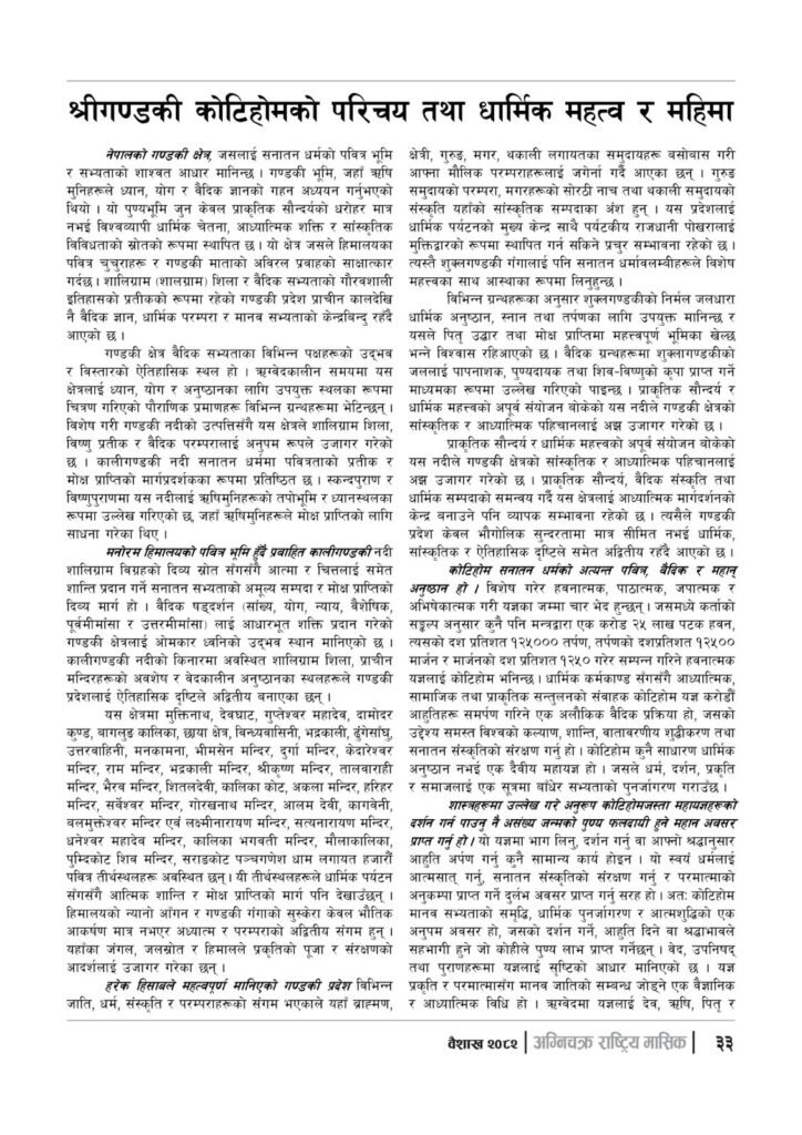यसपटक हामीले अग्निचक्रमा प्रकाशित प्रमुख पेजहरुलाई यहाँ प्रस्तुत गरेका छौं | हेर्नुहोस्- “अग्निचक्र राष्ट्रिय मासिक- कोटिहोम-महायज्ञ-विशेषाङ्क २०८२”